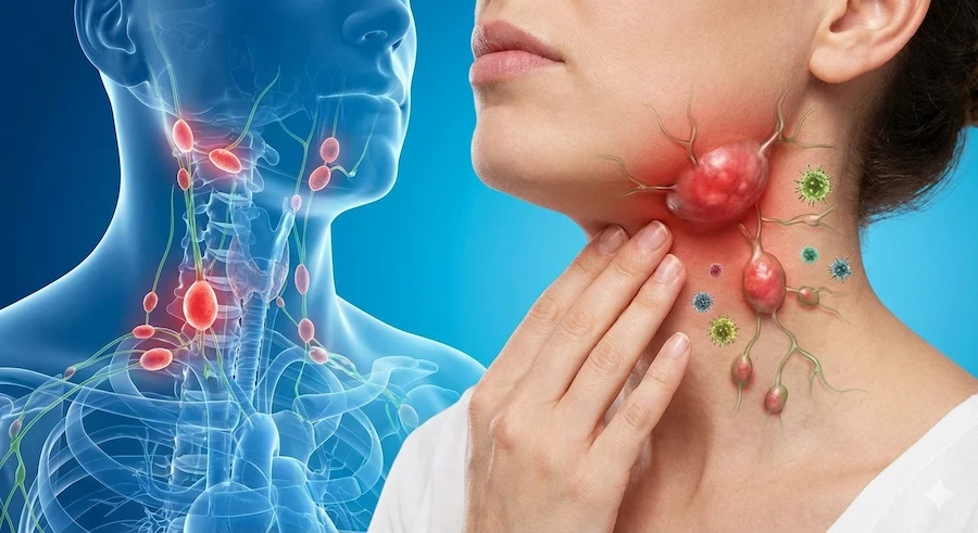 - تورم العقد الليمفاوية تحت الإبط أو حول الترقوة قد يكون علامة على انتشار المرض.