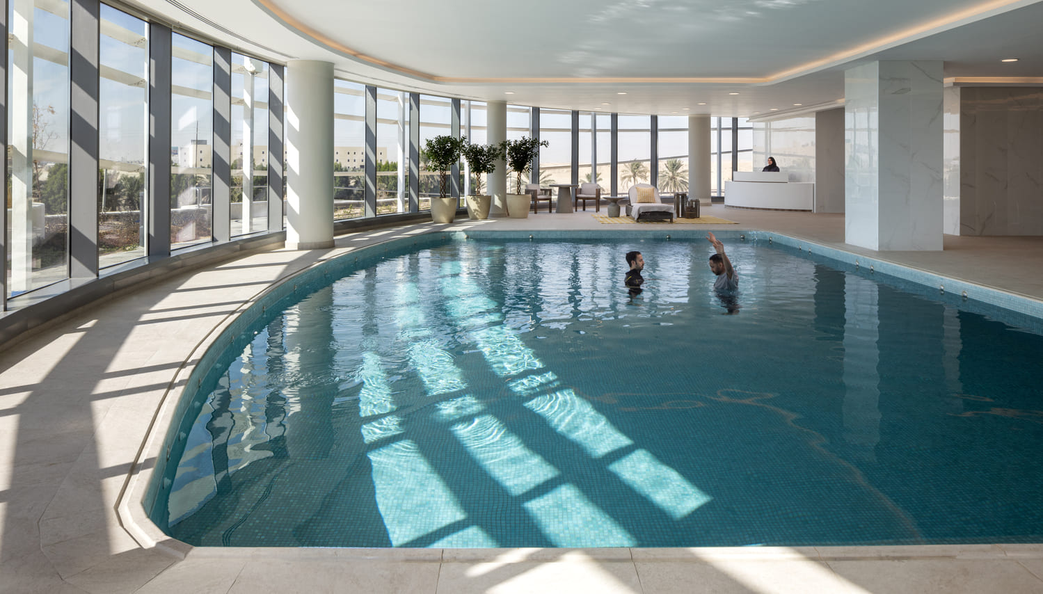 - مسبح تأهيلي مخصص مزود بأنظمة ضبط حرارة الماء
