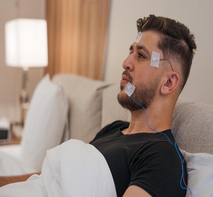 In our advanced sleep laboratory, we perform accurate overnight studies using state-of-the-art multi-channel monitoring systems to measure brain activity, breathing patterns, body movements, and heart rate during sleep. This allows us to reach a precise diagnosis and design an effective treatment plan.
